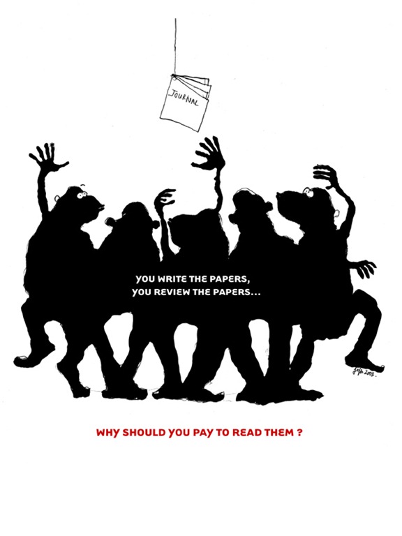 Scientific publishing is in my opinion a strange affair that is still based on archaic ways of thinking founded on outdated technologies. The good part of the current system works like this: Scientists convince funding agencies to give them money so they can do research. They want their research to be disseminated as widely as possible, so they write up their results, and turn them over to publishers free of charge. The publishers send the work to an editor. Scientists also give these editors a list of potential referees, other experts who would be able to critically peer-review the work. Each scientist also typically reviews the work of others (again free of charge) and can often act as an editor too. The authors then revise their work and the reviewers look it over again (free of charge), until the editor decides it’s worth being published. The paper can also be rejected (free of charge, haha).
