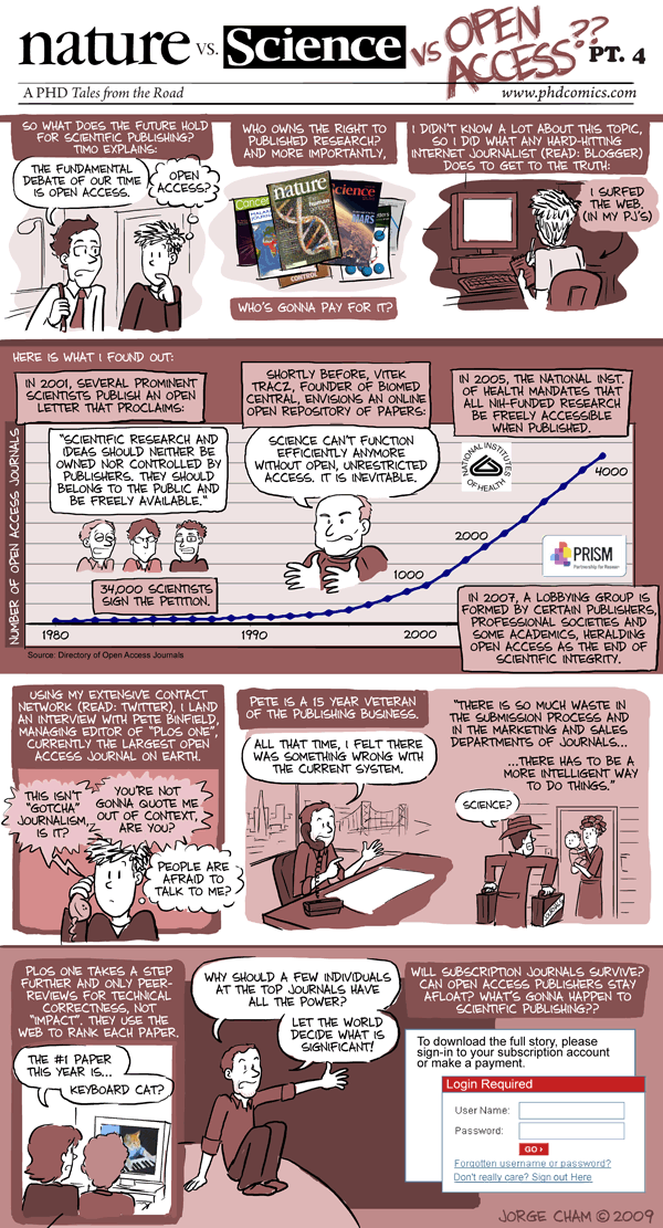 The fear that we will be inundated to the point of paralysis with terribly boring data and “too much information” is unwarranted. That would have happened by now, and it hasn’t, because the more data and information we have, the more ways we develop for sorting it, filtering it, and parsing the best from the rest. Does a dataset on beetle leg length require peer-review? Probably not. That depends on what kind of conclusions we’re drawing. But why not just allow the data and findings to get published, and then allow further open peer-review over time– a continuous review period–so that a paper’s ‘impact’ is flexible. Basically, we need to make publishing easier and peer-review more rigorous.