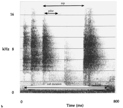 The lack of group-specific echolocation makes sense as this would require adult bats to learn and convergence in call type, which would decrease their ability to have an optimal call design for hunting. Also, there’s a tradeoff in call design: the greater vocal individuality, the more difficult it is to have calls be similar among groupmates. A similar tradeoff exists between calls that are stereotyped (search-phase calls) and ones that are highly flexible (like those used for avoiding obstacles). Search-phase calls are constant in structure over time (relatively constant within each bat), so it is actually easier for a computer (and presumably a bat) to discriminate individuals using these calls, as compared to the calls that bats make when approaching obstacles or prey, which are highly variable across contexts (hence relatively variable within each bat). In any case, variation in call structure cannot tell us what bats actually perceive, which is why Jenna used careful playback experiments.