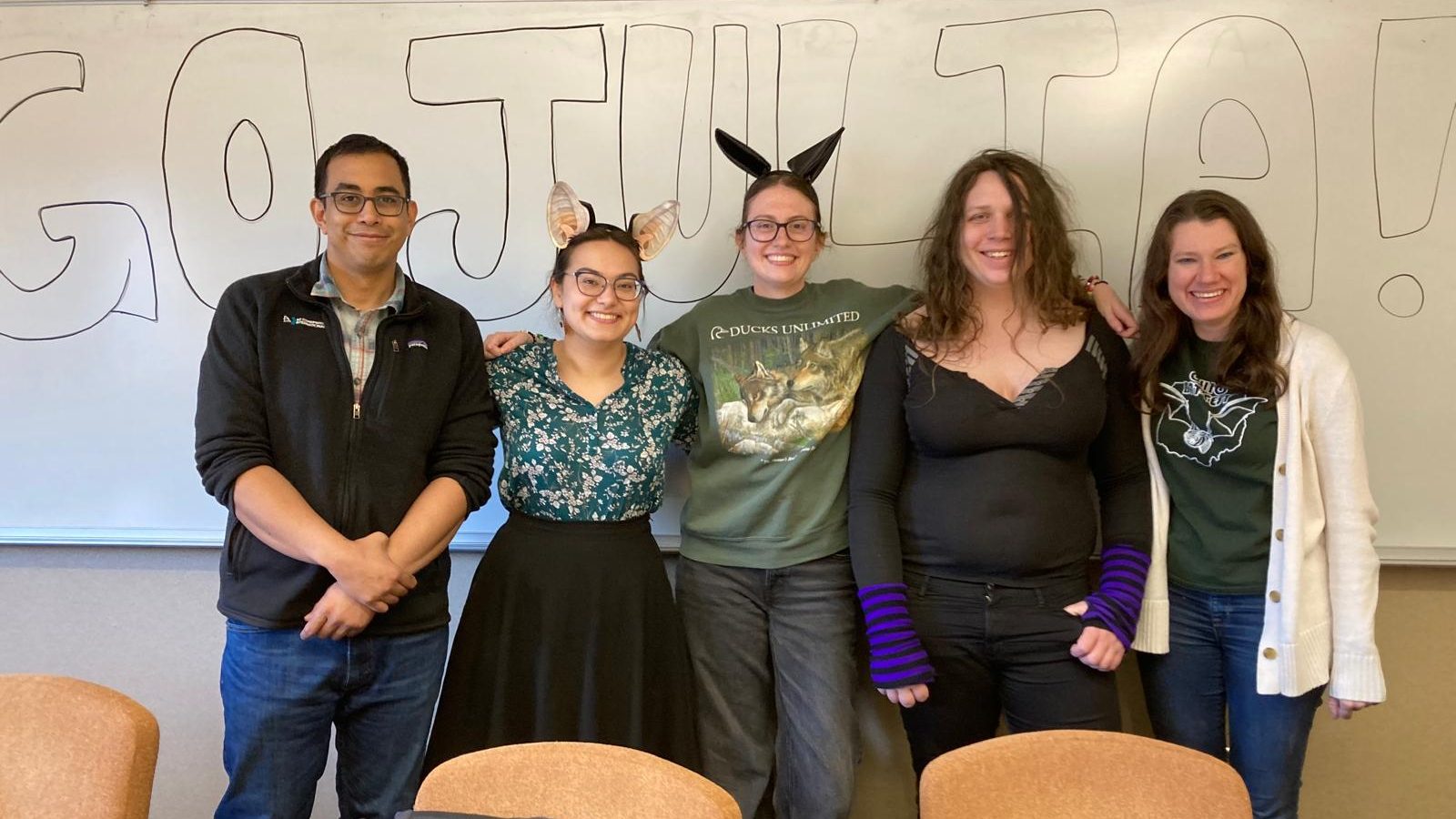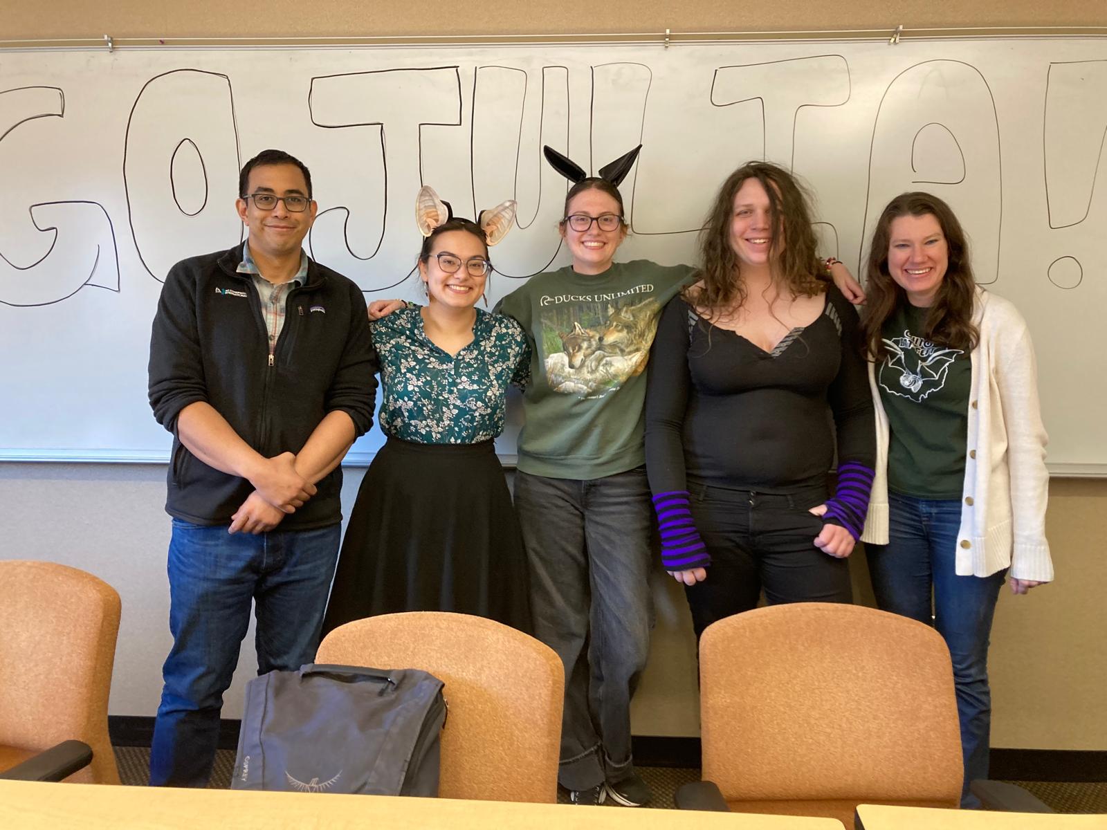 This week, Julia Vrtilek passed her PhD Defense in the department of Evolution, Ecology and Organismal Biology at The Ohio State University. Members of my former lab at Ohio State were there and we had a nice but too brief “reunion”. Her dissertation is entitled “Vocal convergence, responsiveness, and labeling in vampire bats”.
